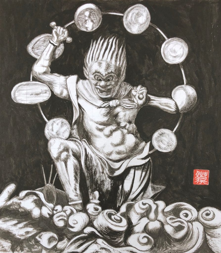 友人が描いてくれた三十三間堂の「風神」